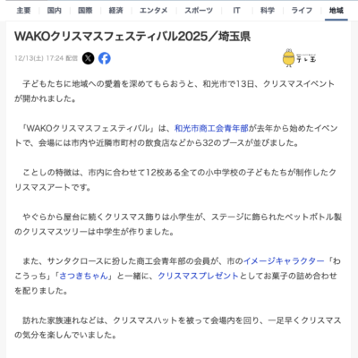 【メディア出演】テレビ埼玉『WAKOクリスマスフェスティバル…