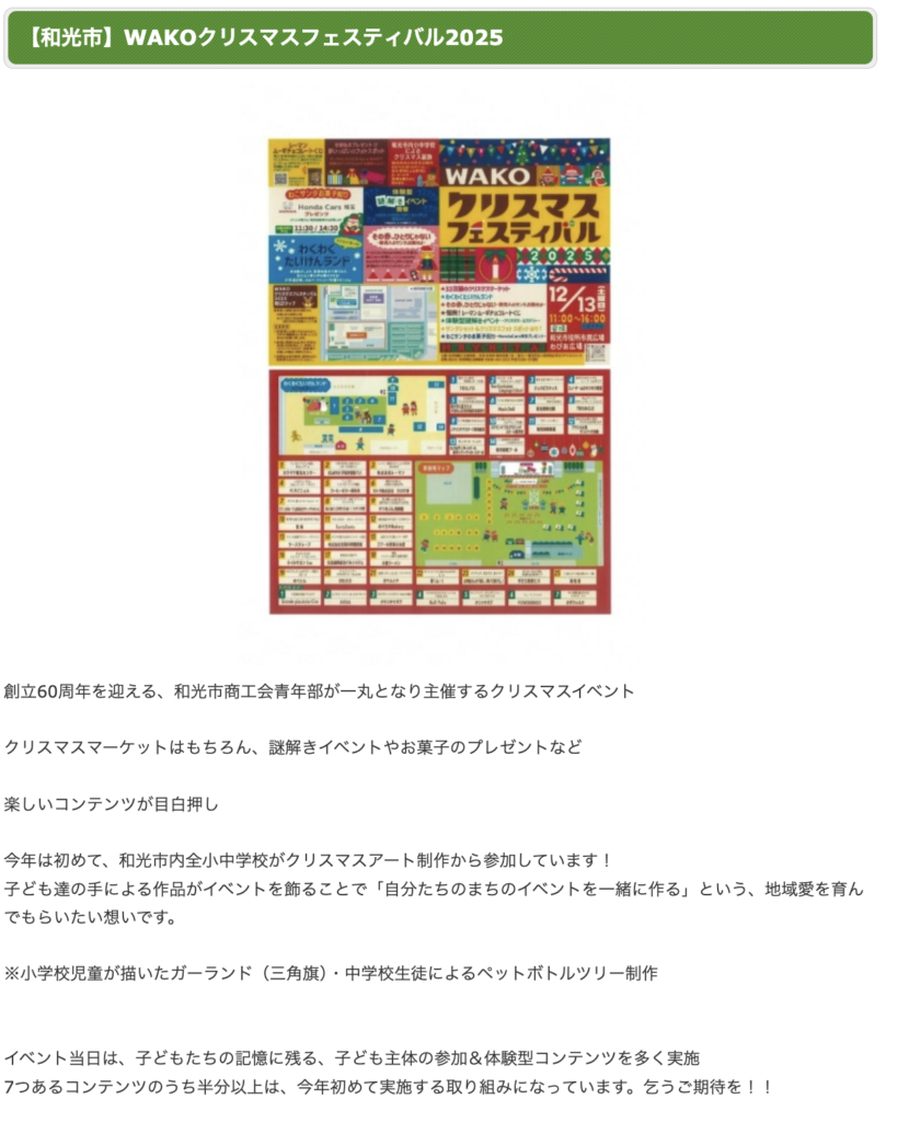 【メディア掲載】まいぷれ[朝霞・志木・新座・和光] 『WAKOクリスマスフェスティバル2025』